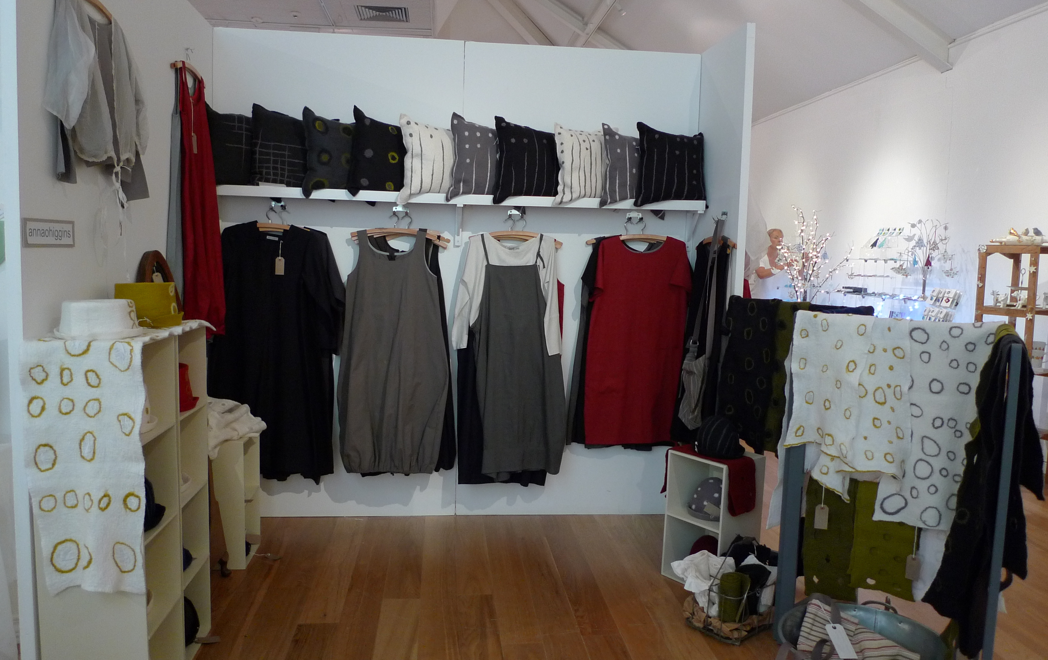 Silk dresses, linen dresses,many felt hats, scarves and felt cushions. I’ve been very busy making for this event ! So here are a few photos ,will post more soon.